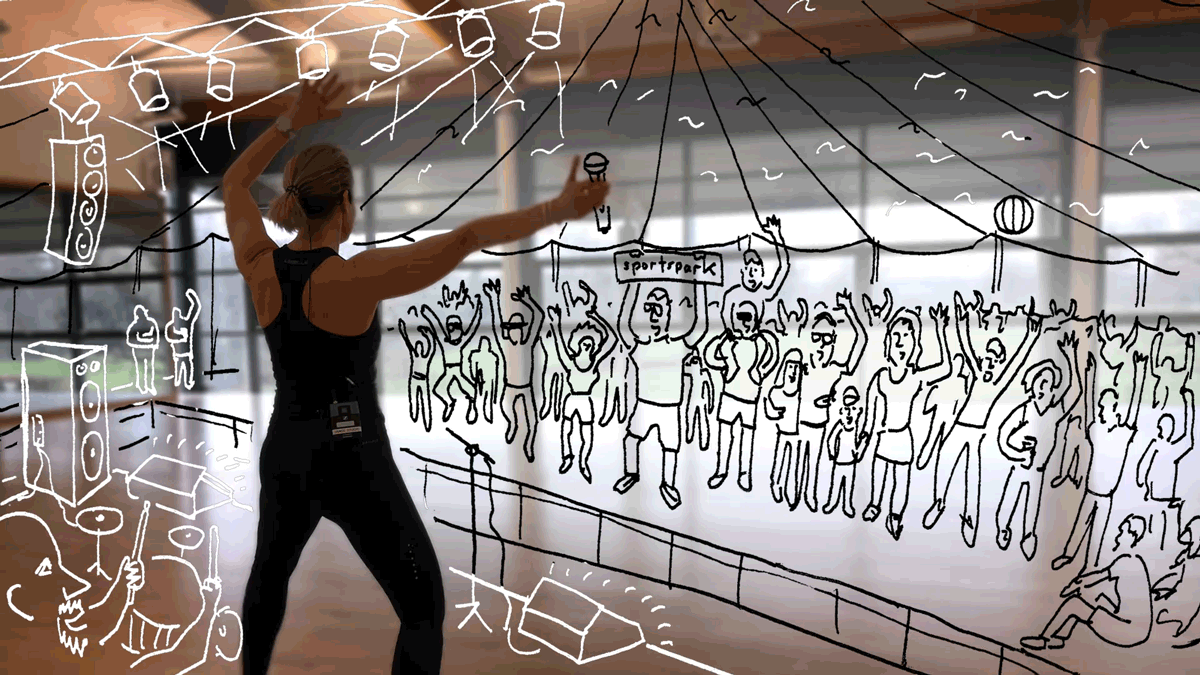 The animations were featured online and on digital screens in the Sportspark and elsewhere. Static versions of the illustrations were used in print and large scale.